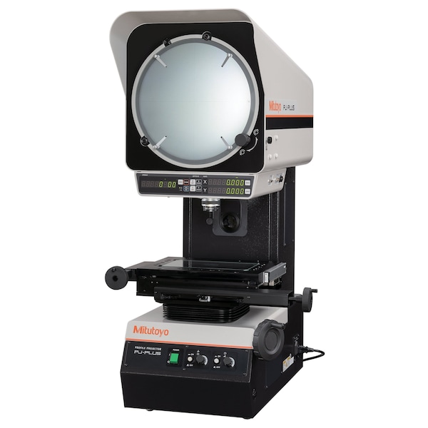 Profile Projector, Resolution 0.0001 in, Image Type Inverted Image, Magnification - Included Lens 10X, Optical System Orientation Vertical, Projector Series PJ-Plus, Screen Size 315 mm, Surface Illumination 12 V / 17.4 W White LED, 30000 hours, Table Size 4 in x 4 in, X-Axis Table Travel Not Applicable, Y-Axis Vertical Focus Travel Not Applicable, Adjustable Brightness Yes
