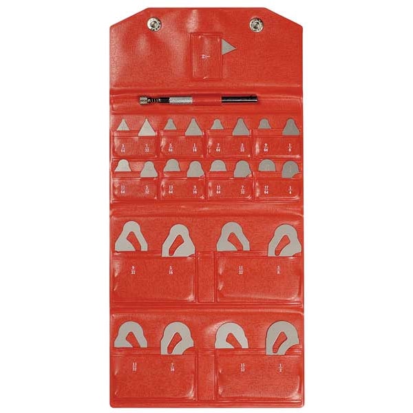 Radius Gauge Set, Range 1/64 in to 17/64 in by 64ths, 9/32 in to 1/2 in by 32nds, Accuracy +/-0.0016 in, Configuration 5 Convex & Concave Radii, Dimension Type Angle, Included Sizes 1/16 in (1/16 in -1/2 in, 9/16 in-1), Increments 1/64 in (1/64 in to 17/64 in), 1/32 in (9/32 in to 1/2 in), Minimum Measurement - Inch 1/64 in, Number of Leaves 25, Set Style Fixed Leaves With Handle, Case Included Yes, Case Type Pouch, Finish Satin Chrome, Includes Fitted Case With Indexed Pockets