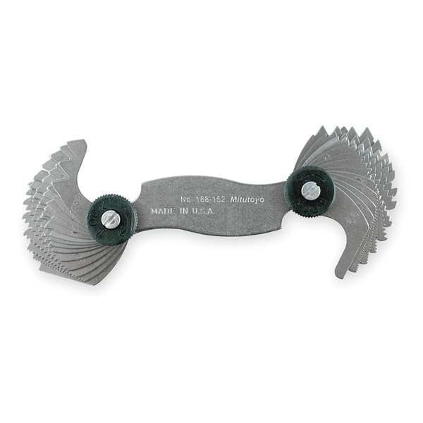 This Mitutoyo 188-152 Screw Pitch Gage is a perfect tool for checking pitch in screws. It features leaves that are designed to fit into narrow spaces, making it ideal for use on small holes and bores. This screw pitch gage has a wide range of pitches per inch and per millimeter. The maximum pitch diameter is 6 mm, while the minimum pitch diameter is 0.05 mm. It also comes with 60 degrees thread angle and 60 degrees thread angle. The leaves are made of steel, which makes them durable and long lasting. They also fold flat when not in use for easy storage or transport. If you want a reliable tool that can help you check the pitch of screws easily, then this Mitutoyo 188-152 Screw Pitch Gage is just what you need.