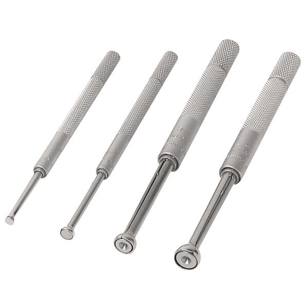 This Mitutoyo 154-901 Small Hole Gage Set is a professional quality tool that can be used to measure small holes with extreme accuracy. This 4-piece set features high-quality, hardened steel measuring surfaces and is ideal for measurements in hard-to-reach areas. This hole gage set comes in a satin finish and has fully hardened gaging surfaces for accurate measurements. The probe depth ranges from 3.50" to 4.24", while the measuring range goes from 0.125" to 0.500". Mitutoyo's 154-901 Small Hole Gage Set is the perfect choice if you are looking for a highly accurate hole gauge set that offers value for money.