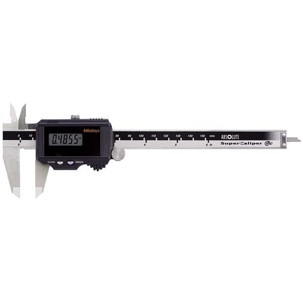 Solar-Powered Digital Calipers, Caliper Range 0-6 in /0-150mm, Resolution 0.0005 in / 0.01 mm, IP Rating IP67, SPC Output No, Accuracy +/-0.001 in, Caliper Material Stainless Steel, Absolute Positioning Yes, Jaw Depth 1 37/64 in, Long Form Calibration Certificate No, Features Rolling Thumb Wheel, Control Buttons on Face, Origin, Inch/mm, Absolute Scales, Standards TUV Rheinland
