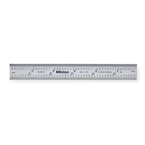 With this MITUTOYO 182-101 Steel Rule, you will be able to accurately measure and mark lengths with ease. The black nonglare satin chrome finish gives the rigid rule a sleek look. The stainless steel construction ensures it is durable and long lasting. With 16ths, 32nds, 64ths and 8ths graduations, the tool has more than enough divisions for accurate measurements. This MITUTOYO 6x3/4 Inch Rigid Rule is the perfect solution for your measuring needs.