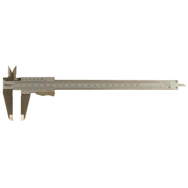 4-Way Vernier Caliper, Range 0 in to 8 in, 0 mm to 203.2 mm, Graduations 0.02 mm, Accuracy +/- 0.03 mm, Caliper Material Stainless Steel, Dimension Type Inch/Metric, Graduations - Lower Scale 0.001 in, Graduations - Upper Scale 0.02 mm, Jaw Actuation Type Thumb Clamp, Jaw Depth 1 31/32 in, Maximum Measurement - Decimal Inch 8 in, Maximum Measurement - Fractional Inch 8 in, Maximum Measurement - mm 200 mm, Measurements 4-Way, Measures Depth Yes, Measures Inside Dimension Yes