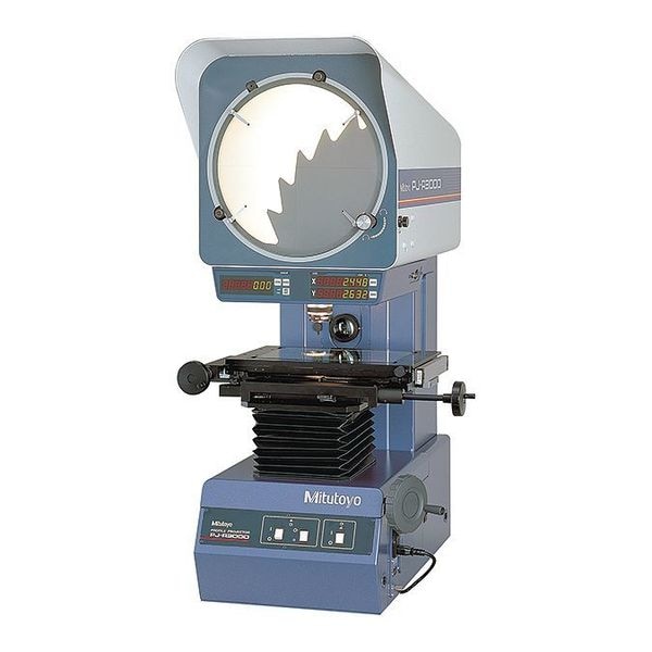 Optical Comparator, Resolution 0.0001 in/0.001mm, Accuracy +/-0.1 Percent Or Less (Contour), +/-0.15 Percent Or Less (Surface), Contour Illumination 24V, 150W Halogen Bulb, Effective Table Working Area 7 1/4 in x 3 1/4 in, Image Type Inverted Image, Magnification - Included Lens 10X, Measuring Unit Linear Scale, Optical System Orientation Vertical, Projector Series Mitutoyo PJ-A3000, Screen Size 12.4 in, Surface Illumination 24V, 150W Halogen Bulb, Table Size 9 15/16 in x 9 15/16 in