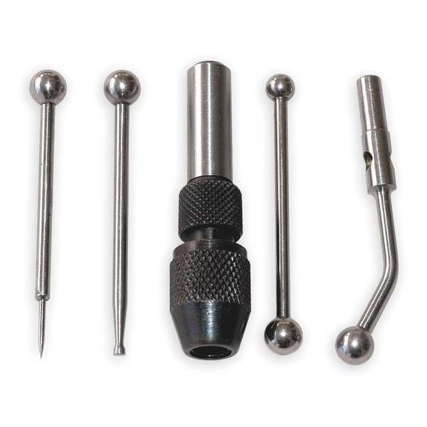 Wiggler Set, Ball Diameter 1/4 in, Construction Steel, Disc Diameter 0.1 in, Includes Ball Contact, Chuck, Disc Contact, Offset Indicator Holder, Pointed Shank, Pouch, Number of Pieces 5, Single or Double End Double End, Tip Diameter 0.25 in, Tip Shape Ball, Case Type Pouch, Features -, Includes Case Yes, Shank Diameter 13/64 in