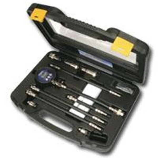 Features and Benefits:For testing and recording maximum cylinder compression in gasoline engines.Stores maximum compression value up to 12 cylindersIncludes 10mm 12mm 14mm 18mm threaded adapters and Ford Triton adapterBacklit LCD for easy to read from any angleUses standard 9V batteryAutomatically shuts off after 3 minutes of non use (memory retained)Extended hose for hard to reach applicationsQuick change coupler connection for ease of useCustom molded case