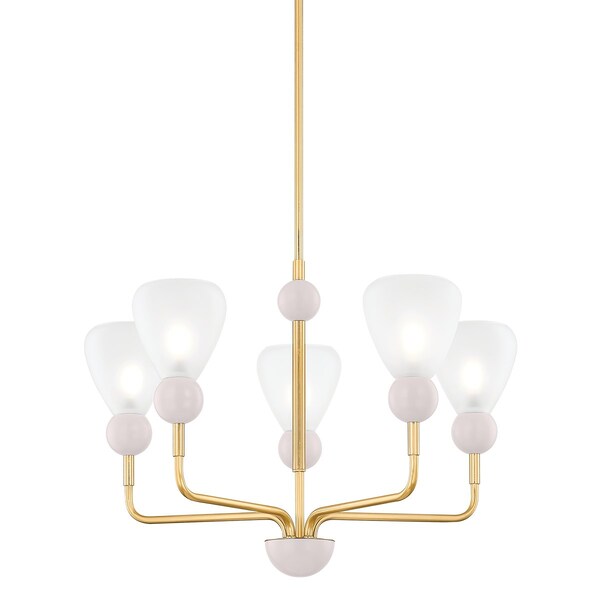 Doreen 5 Light Chandelier 27.25 In. Aged Brass/Soft Peignoir