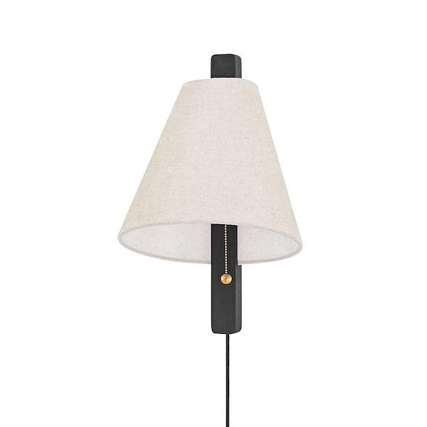 Ellen 1 Light Plug-In Sconce 7 In. Aged Brass/Wood Charred Ash