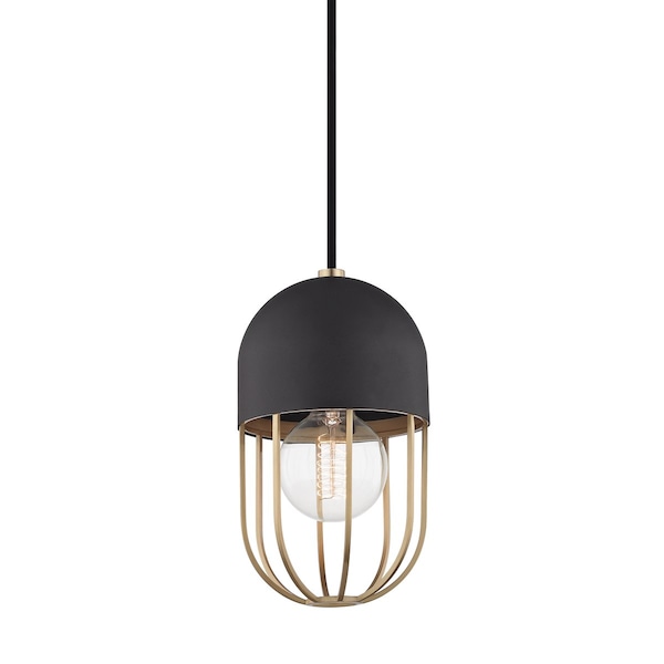 Haley 1 Light Pendant 5.5 In. Aged Brass/Black