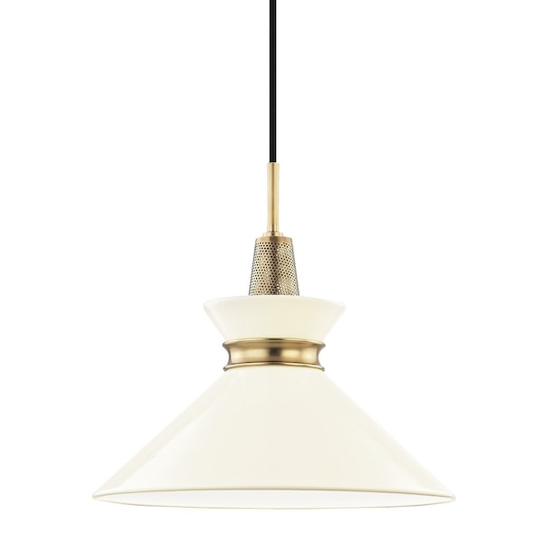 Kiki 1 Light Pendant 14 In. Aged Brass/Cream
