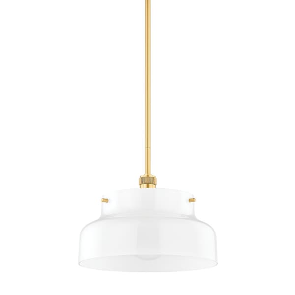 A streamlined opal glossy glass shade is accented with subtle metal details, like the knurling on the socket cup, adding visual interest to this modern pendant's clean, minimal look. A great choice to style in multiples over the kitchen island or solo over a small dining area.