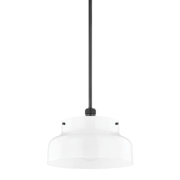 A streamlined opal glossy glass shade is accented with subtle metal details, like the knurling on the socket cup, adding visual interest to this modern pendant's clean, minimal look. A great choice to style in multiples over the kitchen island or solo over a small dining area.