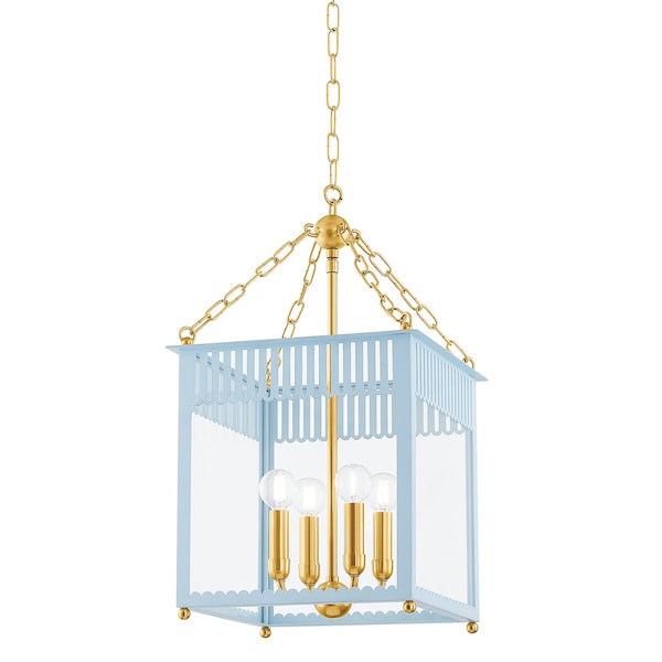 Rosalie 4 Light Lantern 13.25 In. Aged Brass/Soft Arctic Blue