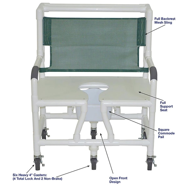 Bariatric Shower Chair 30" Internal Width, Full Support Seat With Commode Opening (6-Heavy Duty Casters 5" X 1 1/4"), 10 Qt Slide Out Commode Pail, 700 Lbs Weight Capacity