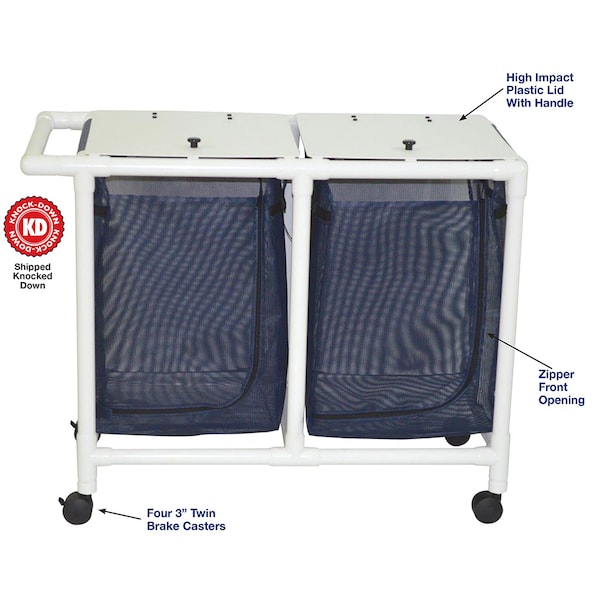 Double Hamper With Mesh Bag (25.71 Gallon Capacity Per Bag), 3" Twin Casters, Zipper Opening, Push/Pull Handle