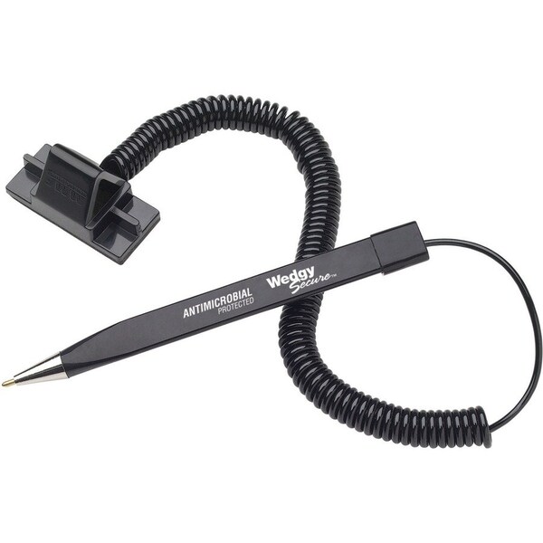 Wedge coil pen features Agion's environmentally friendly fraud-resistant ink that helps prevent tampering of checks and documents. Black security ink writes easily on thermal paper. Telephone-type coil extends to more than 5' and coils back to less than 6". Scabbard base mounts vertically, horizontally and diagonally to telephones, refrigerators, partitions and walls. Wedge coil pen uses standard refills.