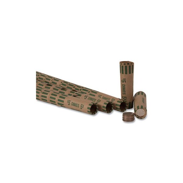 Made of heavy-duty kraft paper with one end crimped for easy filling. Features a double-wall of paper for extra reinforcement. Designed to work in all coin sorting equipment. Colors conform to ABA Standards. Wrapper Type: Crimped End; Denomination: Dimes; Coin Quantity: 50; Total Dollar Value: $5.00.