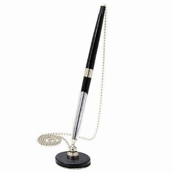 Swivel socket and pen holder are constructed of chromeplated metal for the look and feel of expensive pen sets and the strength to withstand daily abuse.