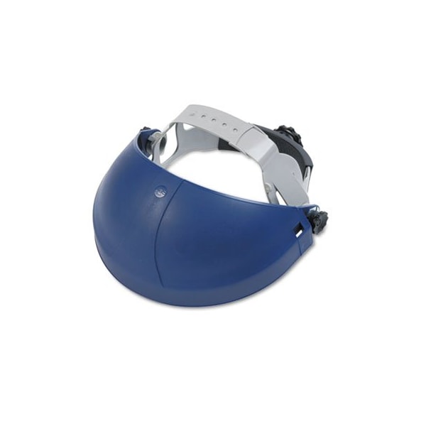 A high-strength thermoplastic crown that provides impact resistance protection to the head. Use headgear with 3M faceshields sold separately for combined head and face protection. Adjustability and a five-position crown strap allow for a customized fit that is more comfortable to individual wearers. With an adjustable ratchet suspension, this headgear features a unique system that allows faceshield window replacement in seconds and helps provide a precise fit. This headgear gives users the option to switch out faceshields based on materials, sizes, shapes, and tints based on specific task requirements. Head protection is recommended for workers in metalworking, woodworking, utilities, and many other industries. Note: Even when this headgear is worn with a faceshield, workers should also use protective eyewear sold separately at all times. Safety Headgear Accessory Type: Face Shield Headgear; Style: Five-Point Ratchet; Materials: Thermoplastic; Colors: Blue.