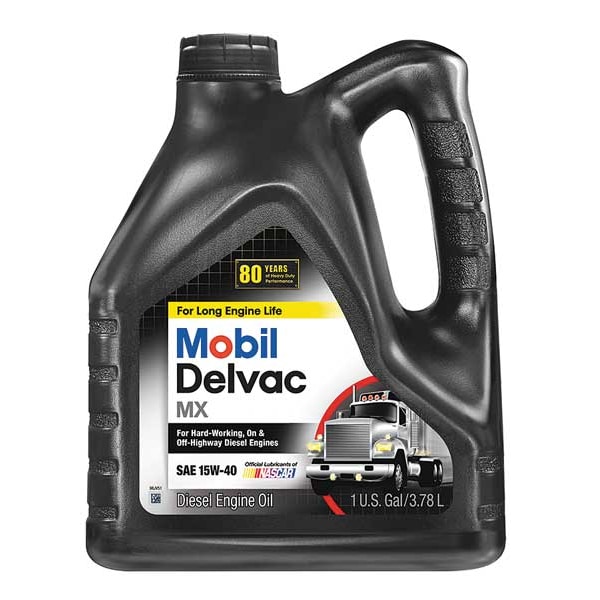 Diesel Engine Oil, Series Mobil Delvac(TM) MX, Container Size 1 gal, Standards ASTM, API CI-4/CH-4/SL/SJ, ACEA E7, A3/B3, A3/B4, Color Brown, Container Type Can, Flash Point 230 Degrees C, ISO Viscosity Grade Not Specified, Pour Point -30 Degrees C, Specific Gravity 0.879 at 15.6 Degrees C, Viscosity Index 123