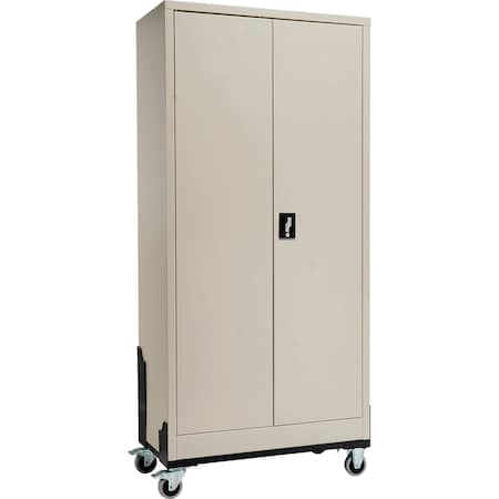 Mobile Steel Storage Cabinet, 36"W x 18"D x 72"H, Unassembled, Tan