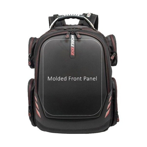 This MOBILE EDGE Core Gaming TSA is a carrying case with a backpack style. It is made of ballistic nylon and has a zipper closure. It has 4 pockets and measures 19.5" in height, 16" in width, and 9" in depth. It is black in color.