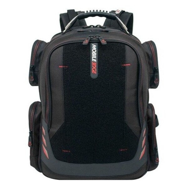 The MOBILE EDGE Core Gaming TSA Backpack is a carrying case made of ballistic nylon. It measures 19.5" in height, 19.5" in length, 17" in width, and 9" in depth. The product type is a backpack.