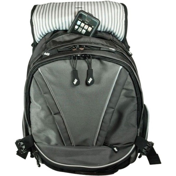 The MOBILE EDGE Graphite Premium MEGBPP is a carrying case with a width of 16", a depth of 9", a height of 21", and a length of 16". It is made of ballistic nylon and is colored graphite.