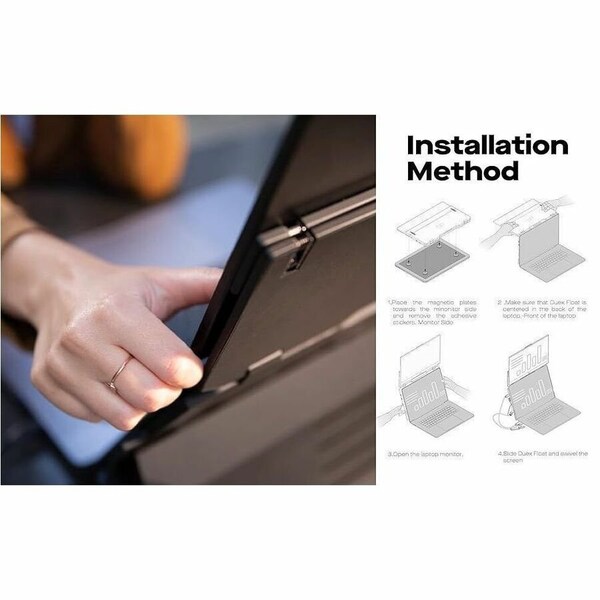 Float LCD Touchscreen Monitor, (1) Type-C Cable with USB-A Adapter, (1) Instruction, (1) HDMI Cable, (4) Laptop Magnets