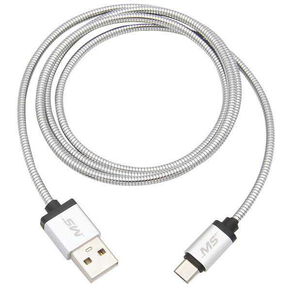 USB Cable, USB Specification 2.0, 3 ft, Color Silver, Connector Type A Male to 5 Pin B Micro Male, RoHS Standards