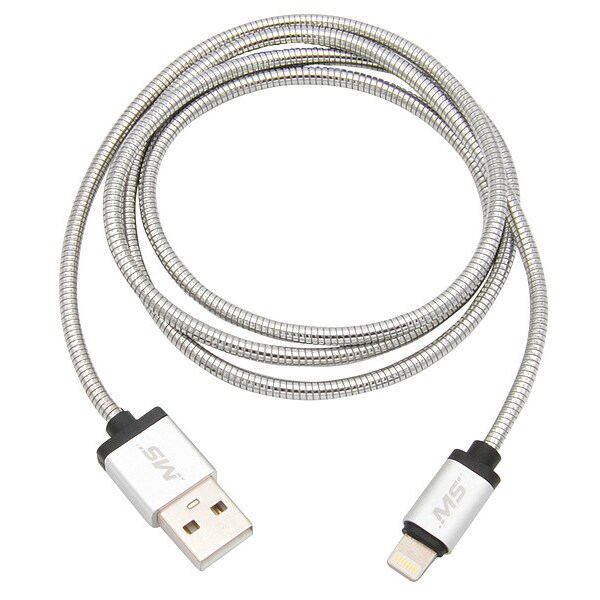 USB Cable, USB Specification 2.0, 3 ft, Color Silver, Connector Type A Male to Lightning(R) Male, RoHS Standards