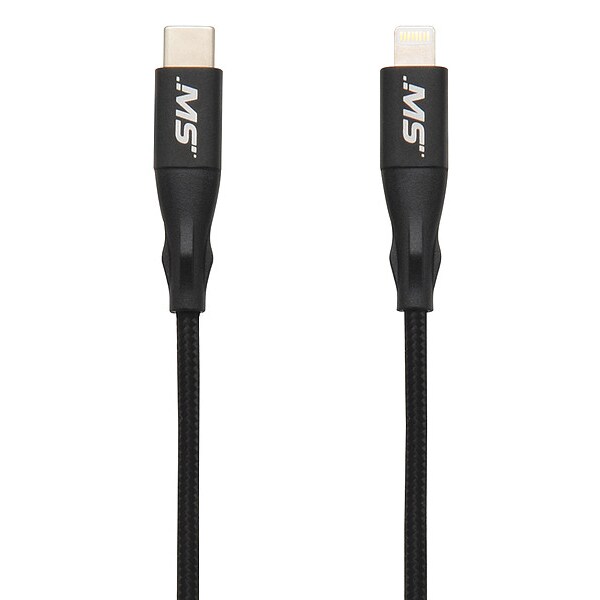 USB Cable, USB Specification 2.0, 6 ft, Color Black, Connector Type Lightning(R) Male to USB-C, RoHS Standards