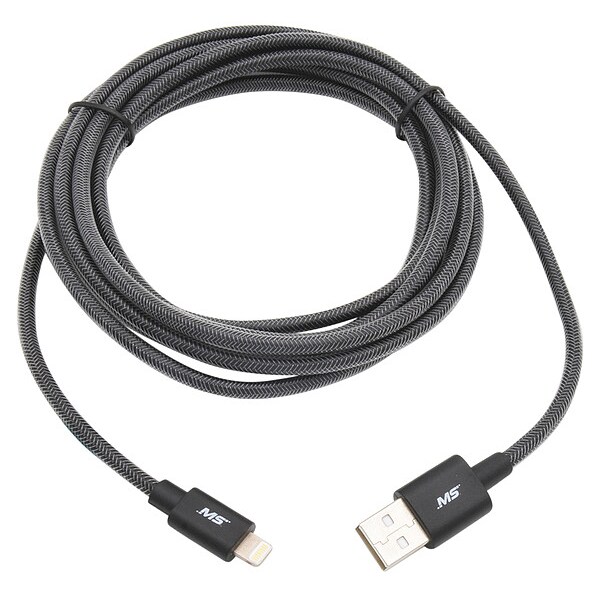 USB Cable, USB Specification 2.0, 9 ft, Color Black, Connector Type A Male to Lightning(R) Male, RoHS Standards