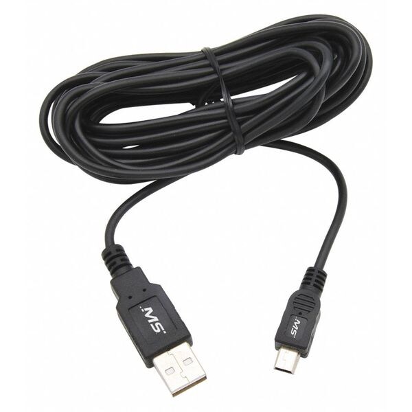 USB Cable, USB Specification 2.0, 12 ft, Color Black, Connector Type A Male to B Mini Male, Mini USB Connector