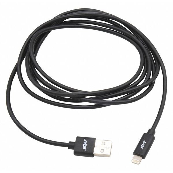 USB Cable, USB Specification 2.0, 6 ft, Color Black, Connector Type A Male to Lightning(R) Male, Lightning(R) Connector