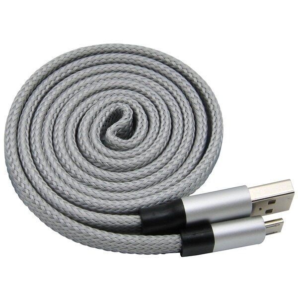 This Retracting Micro to USB cable is 3 feet long. Silver. 5 per Pack.