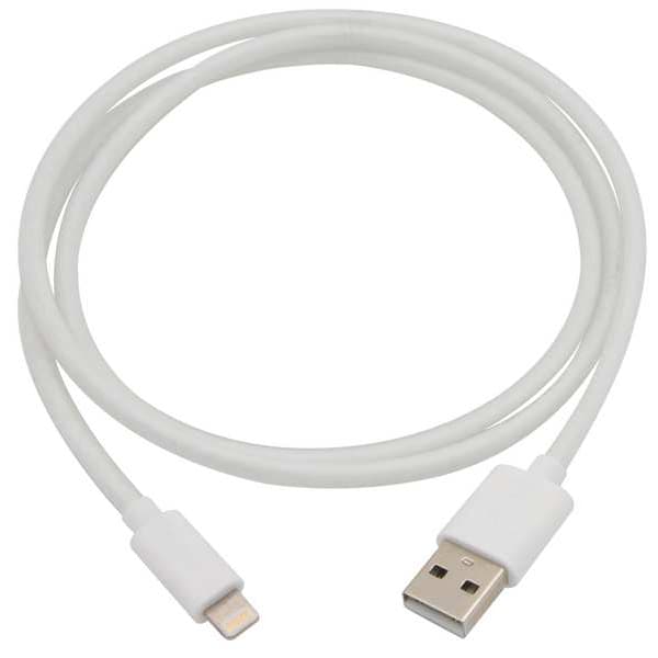 Standard USB Cable, USB Specification 2.0, 3 ft, Color White, Connector Type A Male to Lightning(R) Male, RoHS Standards