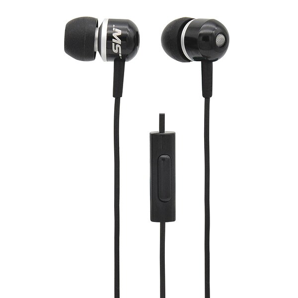 Wired Earbuds, Material Plastic, Color Black/Silver, For Use With Cell Phone, Tablets, Mobile Devices, Includes Eartips, In-Line Microphone, Storage Pouch