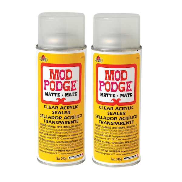 Preserve your hard work with the Mod Podge Matte Clear Acrylic Aerosol Sealer. Ensure all your arts and crafts stand the test of time with a layer of this innovative matte sealer. This crystal clear, quick-drying, matte formula will not run, drip, or yellow. Protect everything from paint to wood to stain with this easy-to-use decoupage spray. Equip your craft closet with this iconic brand of clear acrylic sealer for a sleek finish every time. Seal your acrylic paint projects, your home decor pieces, and your decoupage paper creations with this versatile sealant. Add Mod Podge Matte Clear Acrylic Aerosol Sealer to your art supplies for durable protection to all your DIY projects. Sold as a pack of 2.