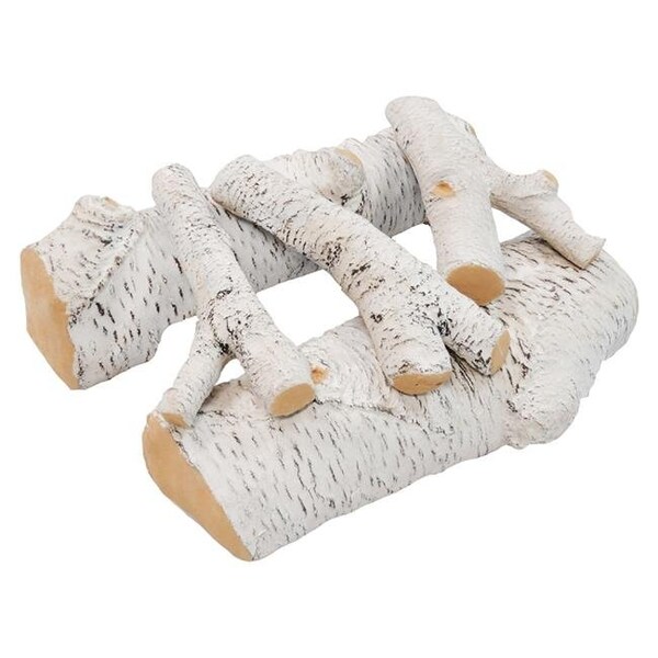 The 5 piece birch Regal Flame ceramic fireplace gas log set in birch finish is designed to be used in any vented or ventless fireplaces. They are ideal for an 18" fireplace. Each log has been carefully sculpted to perfection to imitate the true beauty of nature while availing to our eco friendly world.