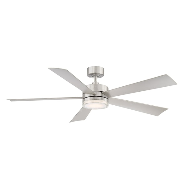 Wynd Indoor and Outdoor 5-Blade Smart Ceiling Fan 60in Stainless Steel with 2700K LED Light Kit and Remote Control
