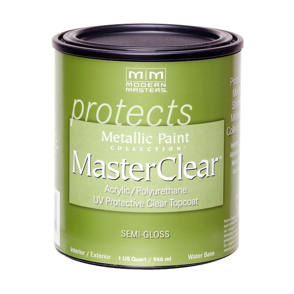 Modern Masters MasterClear Protective Clear Topcoat is a one part, self-crosslinking topcoat with UV absorbers and UV inhibitors to prevent yellowing over time. Acrylic/polyurethane formula includes mar and slip aids for excellent protection that exceeds 3,000 scrub cycles. Use with Metallic Paint Collection for high traffic interior surfaces for an ultimate, durable clear coat.