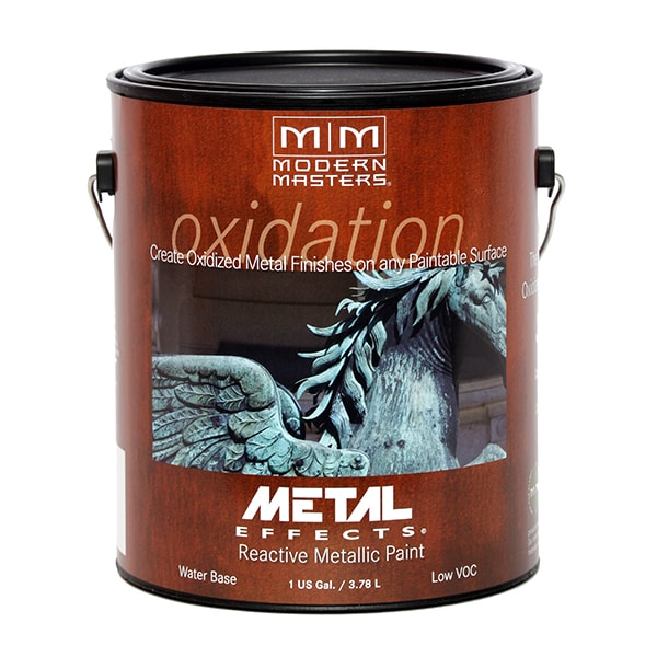 A water-based paint containing real metal particles that will tarnish naturally over time and when exposed to the elements. Rust activator will speed up the oxidation process to create beautiful, authentic rusted iron finishes on any paintable surface.