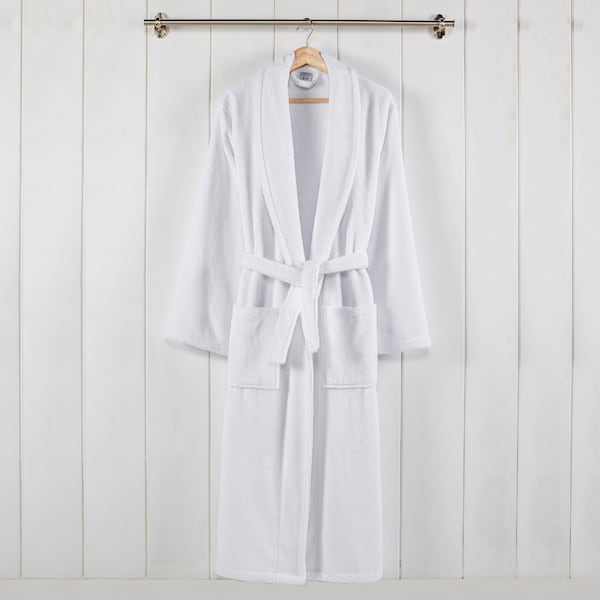100 % Cotton Classic bathrobe with Shawl collar White Small/Medium (Discontinued)