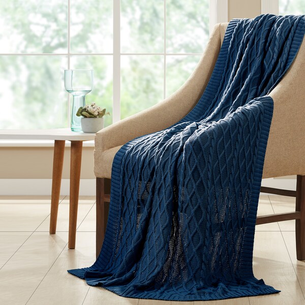 100% Cotton Oversized Cable diamond knit throws Blue (Discontinued)