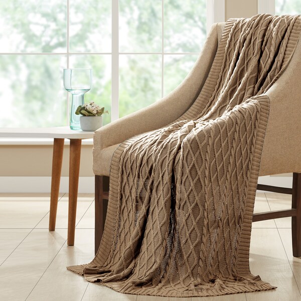 100% Cotton Oversized Cable diamond knit throws Coffee (Discontinued)