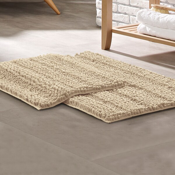 2-Pack Chenille Noodle with non-slip backing bath mat set Ivory (Discontinued)