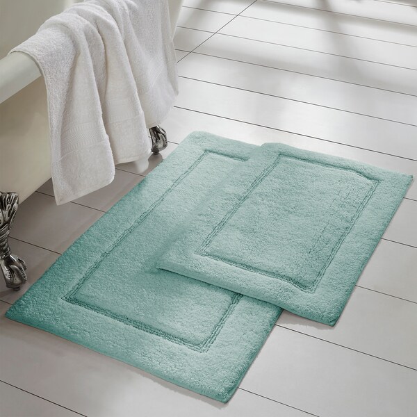 2-Pack Solid Loop with non-slip backing Bath Mat Set Spa Blue (Discontinued)