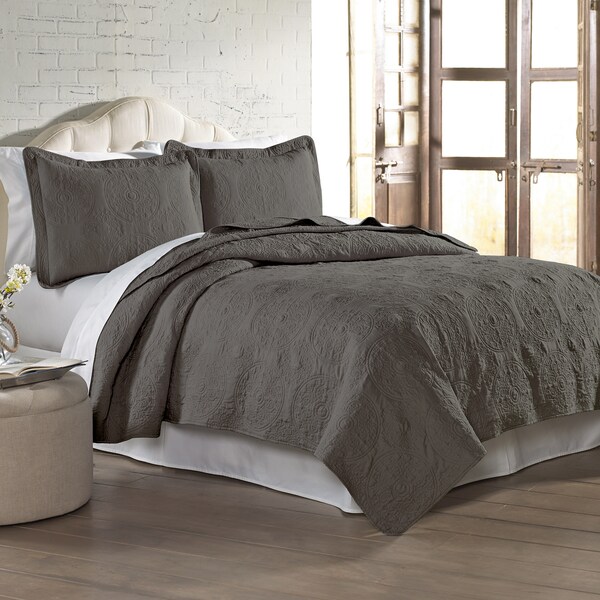 3 pc Solid embroidered quilt sets Full/Queen Charcoal (Discontinued)