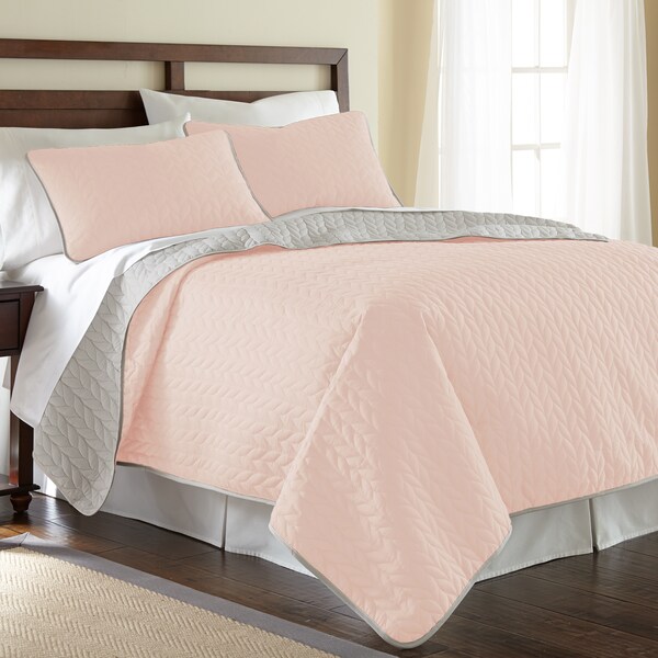 3-Piece solid reversible coverlet set leaf blush/silver queen (Discontinued)